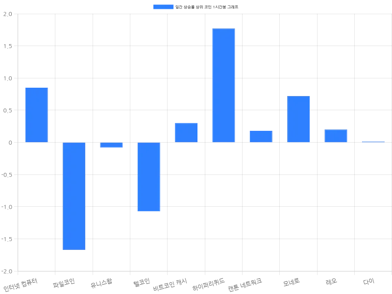 한편, 하이퍼리퀴드와 캔톤 네트워크는 각각 0.86% 상승하며 안정적인 거래를 이어가고 있다. 모네로는 0.27% 상승했으며, 레오와 다이는 각각 0.10%와 0.00%의 등락률을 기록하며 상대적으로 안정적이다.