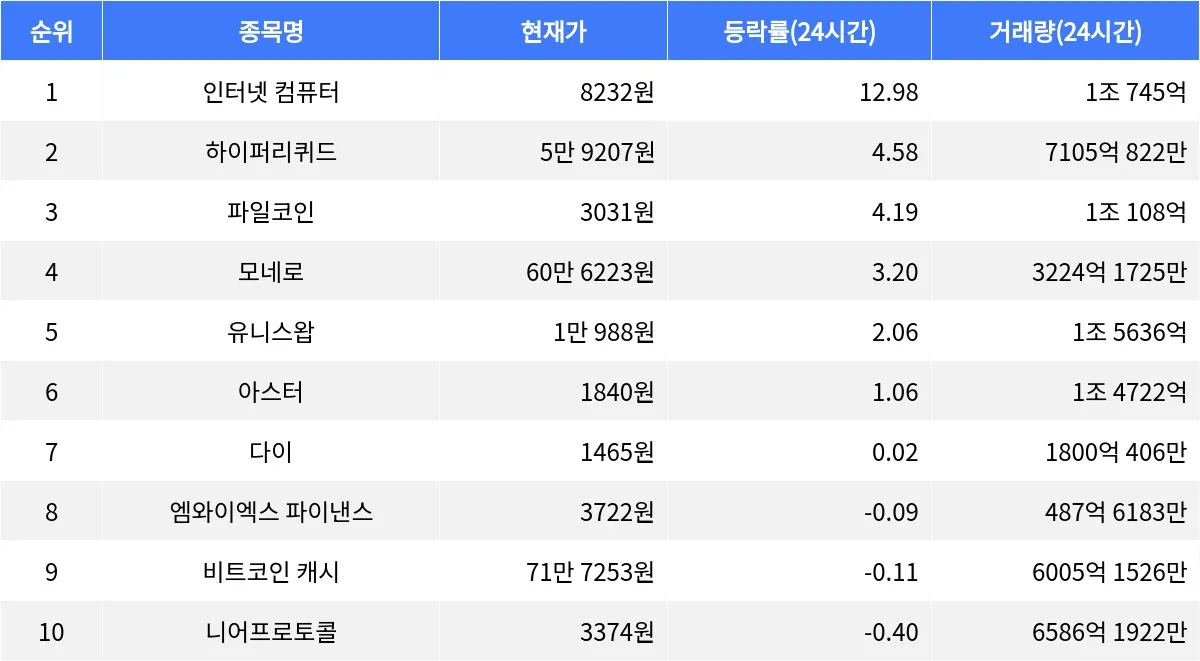 24시간 거래량 1조 745억 원 기록하며 강한 상승세 유지