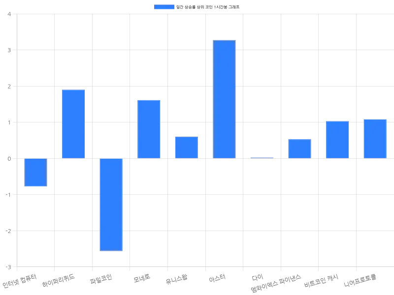한편, 아스터는 1.06% 상승하며 1840원에 거래되고 있고, 다이는 0.02% 소폭 상승하여 1465원에 거래 중이다. 엠와이엑스 파이낸스는 0.09% 하락하며 3722원에 거래되며, 비트코인 캐시는 0.11% 하락하여 71만 7253원에 거래되고 있다. 마지막으로, 니어프로토콜은 0.40% 하락하여 3374원에 거래 중이다.