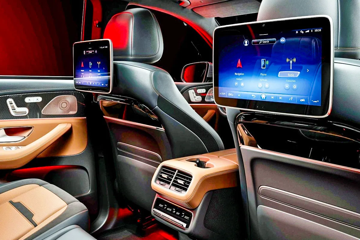 실내는 플래그십 SUV에 걸맞은 고급감과 AMG 특유의 역동성이 조화를 이룬다. AMG 전용 나파 가죽으로 마감된 시트와 카본 트림은 스포티한 분위기를 연출하며, AMG 퍼포먼스 스티어링 휠은 운전의 재미를 더한다. 또한, 2세대 MBUX 인포테인먼트 시스템에는 AMG 전용 디스플레이 테마가 추가되어 주행에 필요한 다양한 정보를 직관적으로 제공한다. 이 밖에도 부메스터 서라운드 사운드 시스템, 에너자이징 패키지 플러스 등 최고 수준의 편의 사양이 대거 탑재되어 안락한 주행 환경을 지원한다.