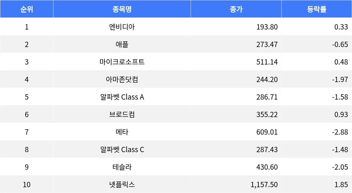 넷플릭스 1.85% 상승, 메타 2.88% 하락으로 희비 엇갈려