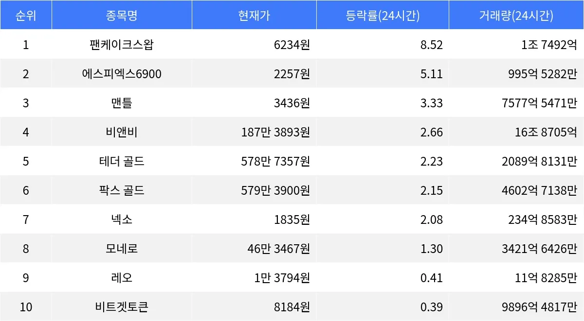 팬케이크스왑은 탈중앙화 거래소로서 다양한 토큰 거래와 유동성 제공을 지원하며, 에스피엑스6900은 주요 지수에 기반한 암호화폐로 안정적인 상승세를 보이고 있다. 맨틀은 블록체인 플랫폼으로 다양한 분산형 애플리케이션(DApp)의 개발을 지원하는 점에서 기술적 특징이 있다.