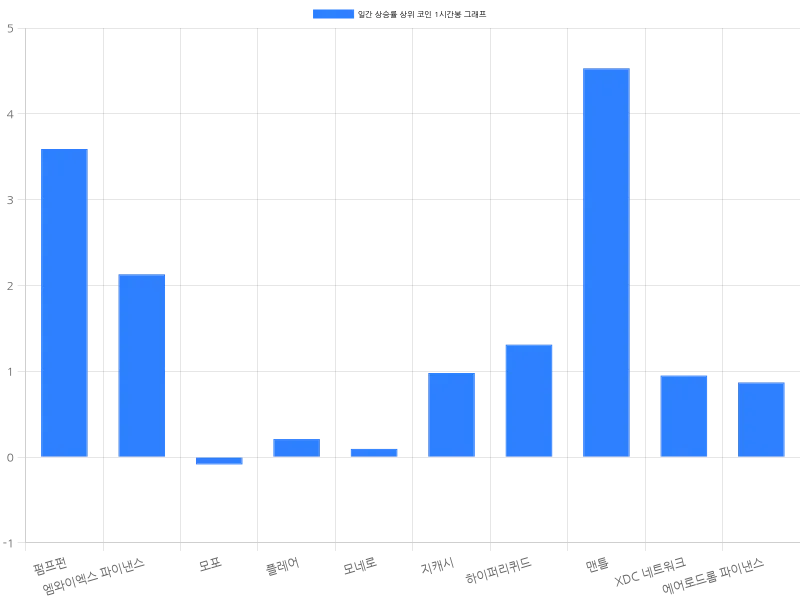 지캐시는 5.37% 상승하며 31만 9845원에 거래되고 있으며, 1시간 등락률 0.98%로 긍정적인 흐름을 지속하고 있다. 하이퍼리퀴드는 4.70% 상승해 5만 2416원에 거래되고 있으며, 1시간 동안 1.31% 상승하여 안정적인 상승세를 보이고 있다. 맨틀은 4.61% 상승하며 2478원에 거래되고 있으며, 1시간 동안 4.53% 상승세를 기록해 단기적으로 강한 상승 흐름을 보이고 있다. XDC 네트워크는 24시간 동안 3.34% 상승하며 86원에 거래되고 있으며, 1시간 동안 0.95% 상승 중이다. 에어로드롬 파이낸스는 3.27% 상승하며 1118원에 거래되고 있으며, 1시간 동안 0.87% 상승세를 보이고 있다.
