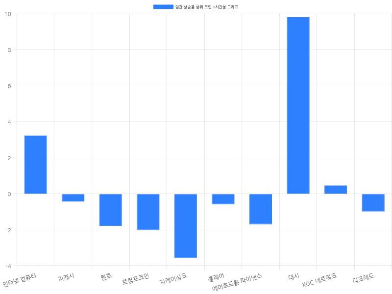 플레어(Flare)는 24시간 동안 7.90% 상승하며 21원에 거래되고 있고, 1시간 동안 -0.57%의 소폭 하락을 보이고 있다. 에어로드롬 파이낸스(Aerodrome Finance)는 24시간 동안 7.89% 상승하며 1275원에 거래되었고, 1시간 동안 -1.68% 하락했다. 대시(Dash)는 24시간 동안 5.99% 상승하며 16만 7103원에 거래되고 있으며, 1시간 동안 9.81% 상승하며 강한 단기 상승세를 보이고 있다. XDC 네트워크는 24시간 동안 5.75% 상승하며 78원에 거래되고 있으며, 1시간 동안 0.47% 상승했다. 디크레드(Decred)는 24시간 동안 5.73% 상승하며 5만 8029원에 거래되고 있으며, 1시간 동안 -0.97% 하락했다.