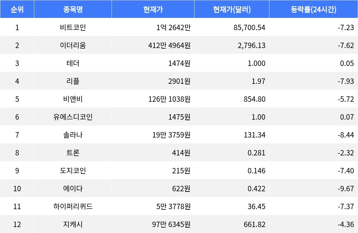 21일 글로벌 가상자산 시황 중계 사이트 코인마켓캡(CoinMarketCap)에 따르면, 비트코인의 현재가는 1억 2642만원이며, 24시간 동안 7.23% 하락했다. 비트코인은 147조 1905억원의 거래량을 기록하고 있으며, 분산 원장 기술을 활용하여 탈중앙화되고 안전한 거래를 제공하는 최초의 암호화폐로 자리잡고 있다.