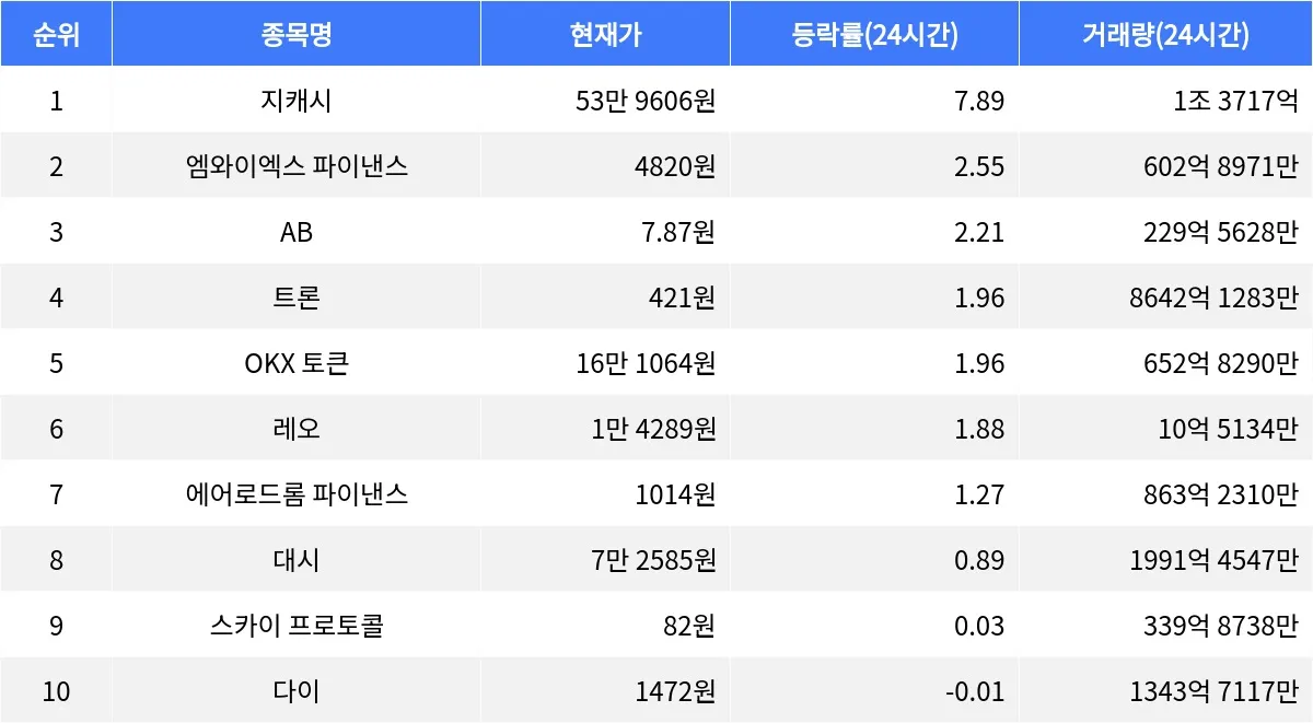 글로벌 가상자산 시황 중계 사이트 코인마켓캡(CoinMarketCap)에 따르면, 암호화폐 시장에서 지캐시가 24시간 동안 7.89% 상승하며 가장 높은 상승률을 기록하고 있다. 현재 지캐시는 53만 9606원에 거래되고 있으며, 24시간 거래량은 1조 3717억 원에 달한다. 한 시간 동안 0.43% 상승하며 단기적으로도 긍정적인 움직임을 나타내고 있다.