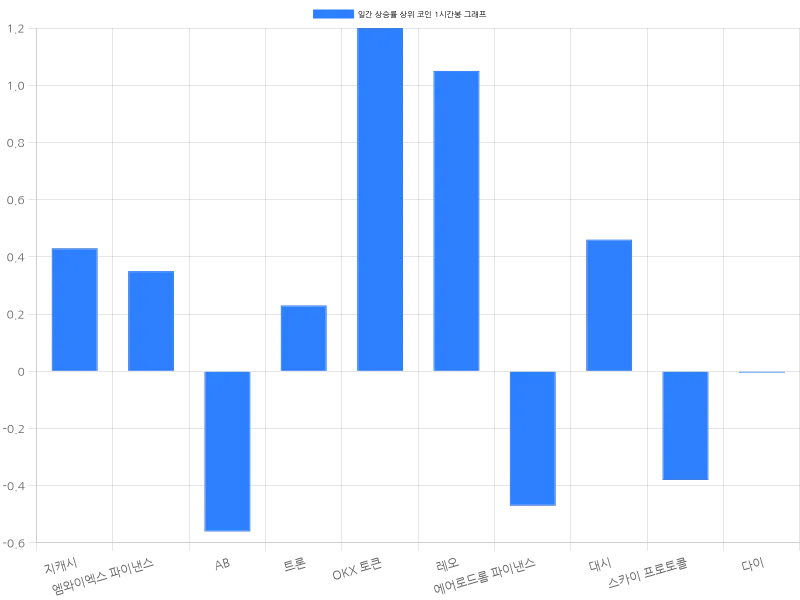 한편, 시가총액 14위의 레오는 24시간 동안 1.88% 상승하며 1만 4289원에 거래되고 있다. 1시간 동안 1.05% 상승하며 안정적인 상승세를 유지하고 있다. 에어로드롬 파이낸스는 1.27% 상승하여 1014원에 거래 중이며, 1시간 동안 -0.47% 하락하여 단기 조정세를 보이고 있다. 대시는 0.89% 상승하며 7만 2585원에 거래되고 있으며, 1시간 동안 0.46% 상승하여 단기 상승세를 이어가고 있다. 스카이 프로토콜은 0.03% 상승하며 82원에 거래되고 있지만, 1시간 동안 -0.38% 하락하여 단기적으로 하락세로 전환되었다. 다이는 0.01% 하락하며 1472원에 거래되고 있으며, 1시간 동안 변화가 거의 없는 안정적인 모습을 보이고 있다.