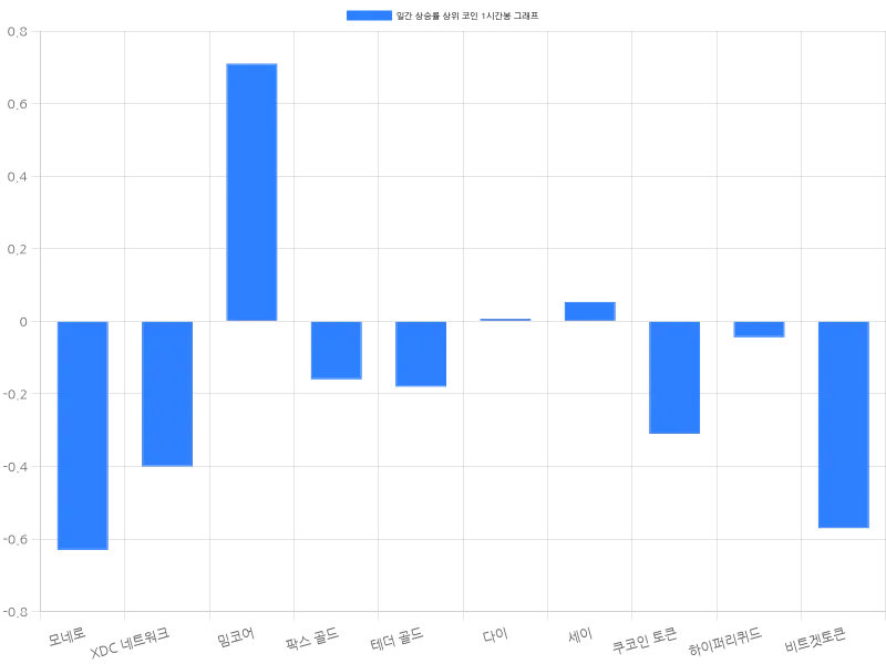 한편, 다이는 24시간 동안 변동이 없었고, 세이는 0.32% 하락했다. 쿠코인 토큰과 하이퍼리퀴드는 각각 0.48%, 0.59% 하락했으며, 비트겟토큰은 0.86% 하락했다.