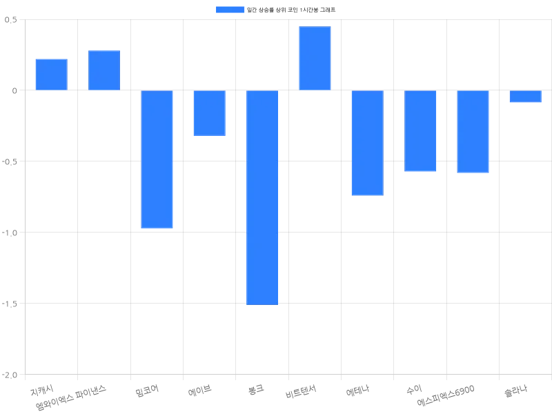 시가총액 42위의 밈코어는 24시간 동안 11.49% 상승하며 현재 2347원에 거래되고 있다. 1시간 동안 0.97% 하락했으나, 전체적인 상승 추세는 유지되고 있다. 시가총액 33위의 에이브는 24시간 동안 8.94% 상승하며 현재 30만 1547원에 거래되고 있다. 한 시간 동안 0.32% 하락했지만, 여전히 상승세를 유지하고 있다. 시가총액 70위의 봉크는 24시간 동안 7.33% 상승하며 현재 0.0142원에 거래되고 있다. 1시간 동안 1.51% 하락했지만, 전반적인 상승세는 유효하다.