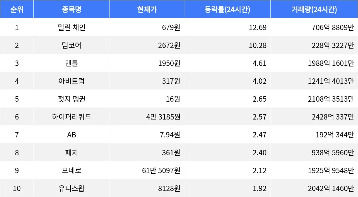 멀린 체인은 독특한 블록체인 기반의 플랫폼으로, 다양한 디지털 자산을 연결하고 상호작용을 촉진하는 것을 목표로 하고 있다. 밈코어는 밈(Meme) 기반의 암호화폐로, 커뮤니티 중심의 생태계를 구축하고자 한다. 이러한 종목들은 각각의 고유한 목적과 비전을 통해 지속적인 성장을 추구하고 있다.