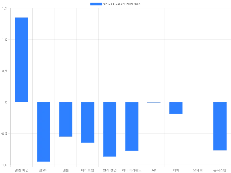 시가총액 25위의 맨틀은 24시간 동안 4.61% 상승하며 현재 1950원에 거래되고 있다. 1시간 동안 -0.55% 하락했으나, 전반적인 상승 추세는 여전히 유지되고 있다. 아비트럼은 24시간 동안 4.02% 상승하며 317원에 거래 중이며, 1시간 등락률 -0.65%를 기록했다. 펏지 펭귄은 2.65% 상승하며 16원에 거래되고 있으며, 1시간 동안 -0.87% 하락했다.