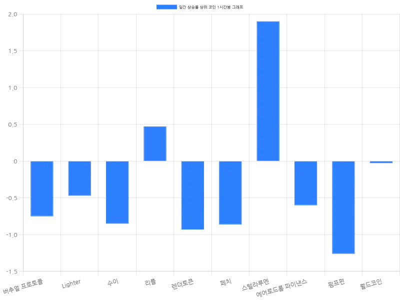 한편, 페치는 24시간 동안 9.84% 상승했으며, 현재 가격은 419원이다. 1시간 동안 0.86% 하락하며 조정이 나타났다. 스텔라루멘은 8.79% 상승하며 현재 365원에 거래되고 있으며, 1시간 동안 1.90% 상승하여 단기 상승세를 이어가고 있다.