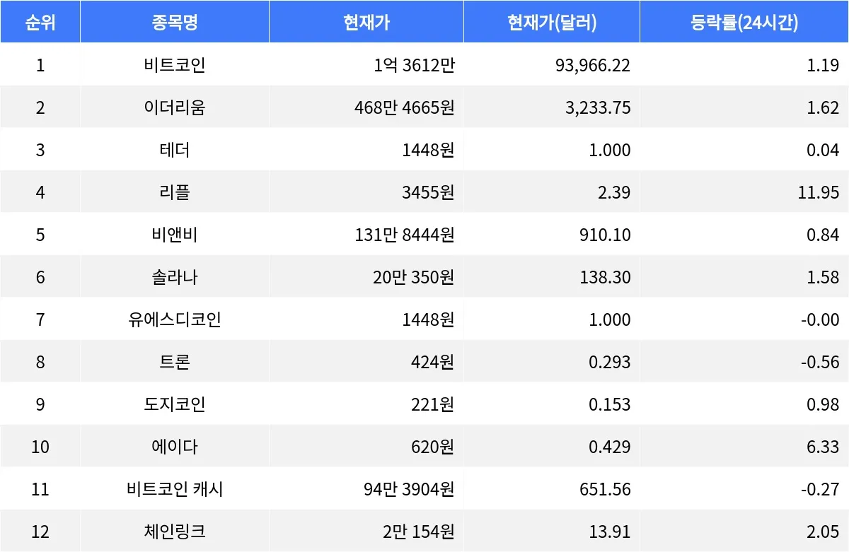 리플은 현재 3455원으로, 24시간 동안 11.95% 상승했다. 리플은 주로 금융기관 간의 빠른 국제 송금을 목표로 설계된 디지털 결제 프로토콜이다. 리플의 24시간 거래량은 9조 6990억원이다.