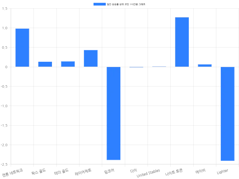 한편, 다이는 24시간 동안 -0.01%의 미미한 하락을 보이며 현재 1478원에 거래되고 있다. United Stables는 -0.03% 하락하며 1477원에 거래 중이다. 나이트 토큰은 24시간 동안 -1.38% 하락하여 90원에 거래되고 있다. 에이비와 Lighter는 각각 -1.51%, -1.58% 하락하며, 단기적으로 하락 추세를 보이고 있다.