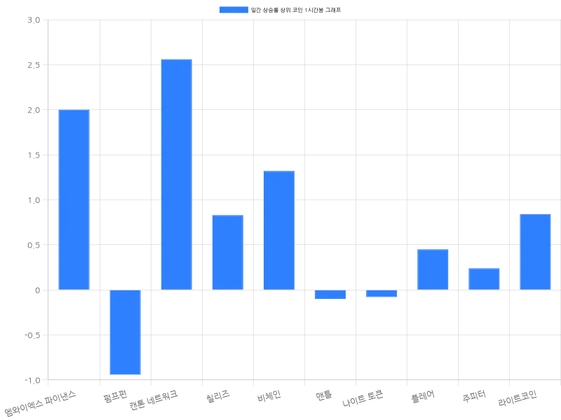 한편, 시가총액 33위의 맨틀은 24시간 동안 1.28% 상승하며 현재 1301원에 거래되고 있다. 최근 1시간 동안은 0.10% 하락하며 소폭 조정세를 보이고 있다. 나이트 토큰은 24시간 동안 1.27% 상승하며 현재 84원에 거래되고 있으며, 1시간 동안 0.08% 하락했다. 플레어는 24시간 동안 1.26% 상승하며 현재 15원에 거래되고 있다. 주피터는 24시간 동안 1.18% 상승하며, 현재 286원에 거래되고 있다. 마지막으로 라이트코인은 24시간 동안 1% 상승하며 현재 9만 9940원에 거래되고 있다.