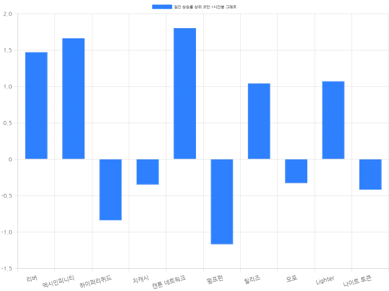 같은 시각, 모포는 8.78% 상승하며 1795원에 거래되고 있고, 1시간 동안 -0.33% 하락했습니다. Lighter는 8.73% 상승하며 2469원에 거래 중입니다. 1시간 동안 1.07% 상승세를 보였습니다. 마지막으로 나이트 토큰은 6.69% 상승하며 87원에 거래되고 있으며, 1시간 동안 -0.42% 하락했습니다.