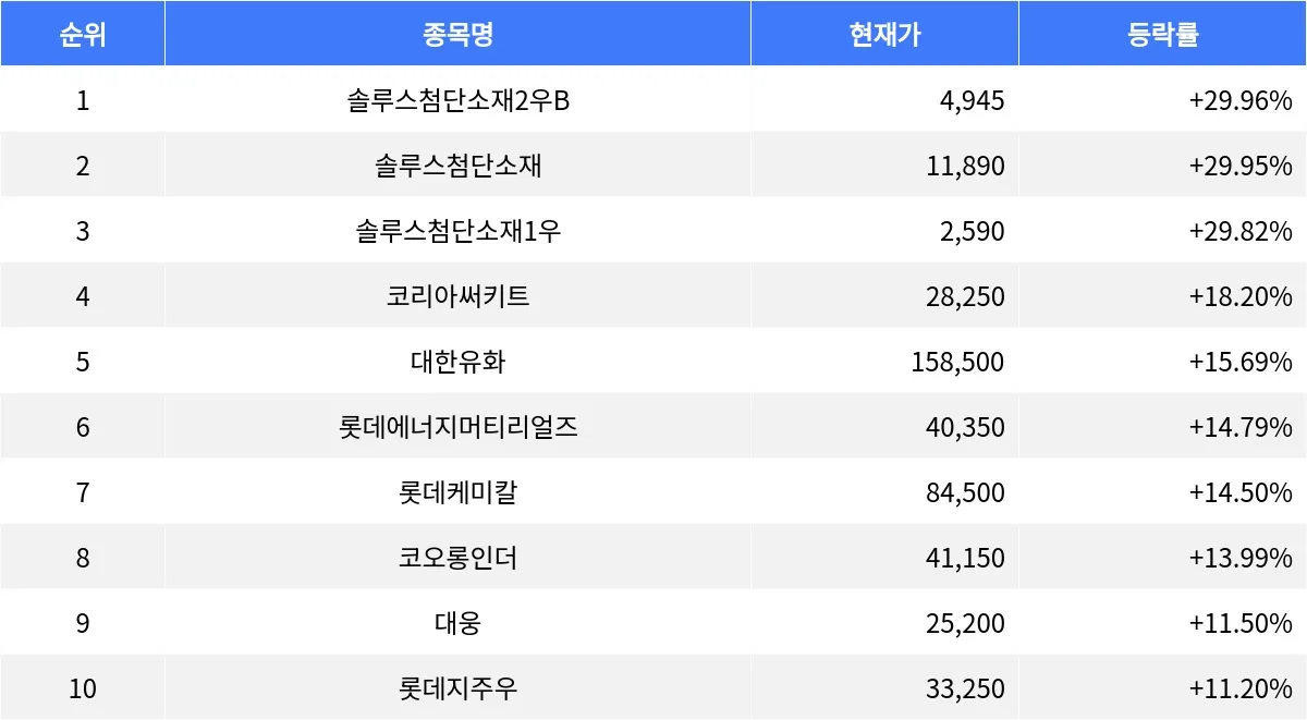 솔루스첨단소재, 솔루스첨단소재1우 등 주목받는 종목들 등락률 분석