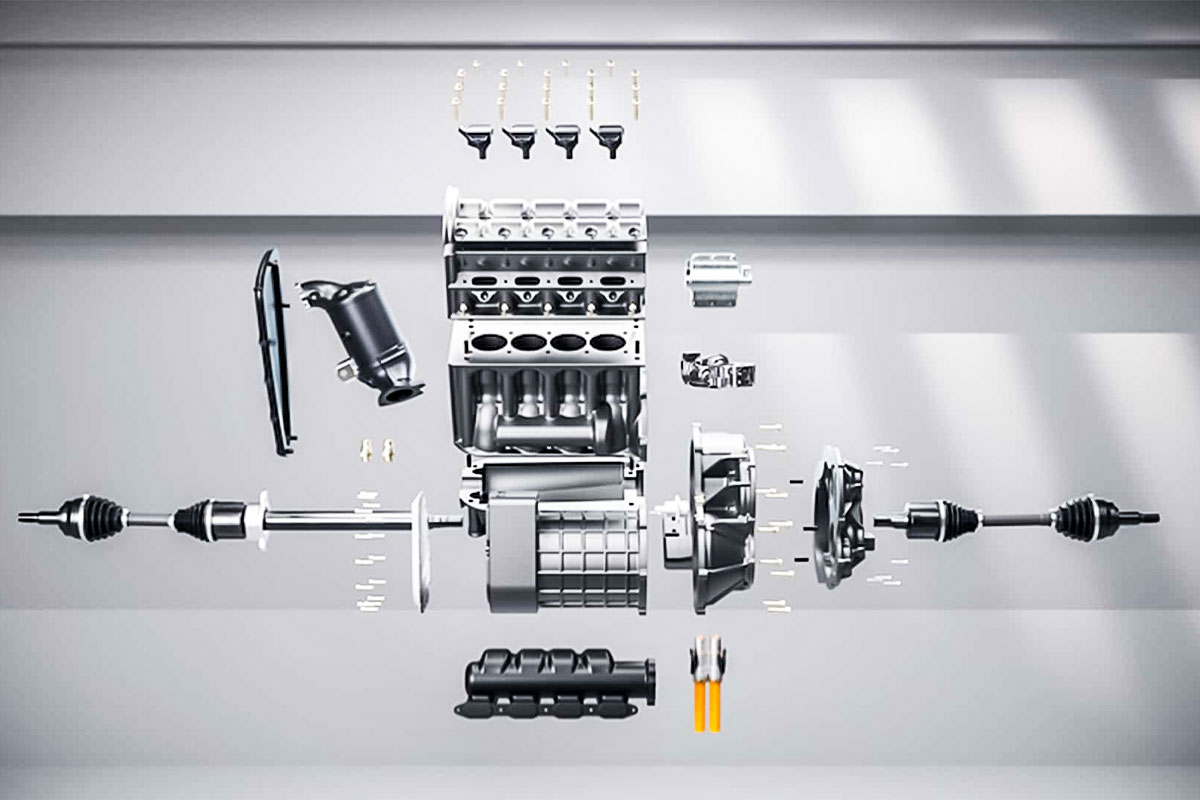 호스 파워트레인이 선보인 새 시스템의 핵심은 ‘호환성’이다. 전기차 생산을 위해 설계된 차체 구조와 생산 라인을 거의 변경하지 않고도 엔진과 변속기, 전기 모터를 통합한 하이브리드 파워트레인을 장착할 수 있도록 설계됐다.이는 기존 전기차의 파워트레인보다 길이를 약 150mm 단축한 초소형 설계 덕분에 가능하다. 신형 시스템은 1.5리터 4기통 엔진과 전용 하이브리드 변속기를 기반으로, 740mm 폭의 듀얼모터(P1+P3) 구성과 650mm 폭의 초소형(P2) 구성 두 가지로 제공된다. 이 컴팩트한 구조 덕분에 기존 전기차의 프런트 서브프레임에 거의 그대로 장착할 수 있다.