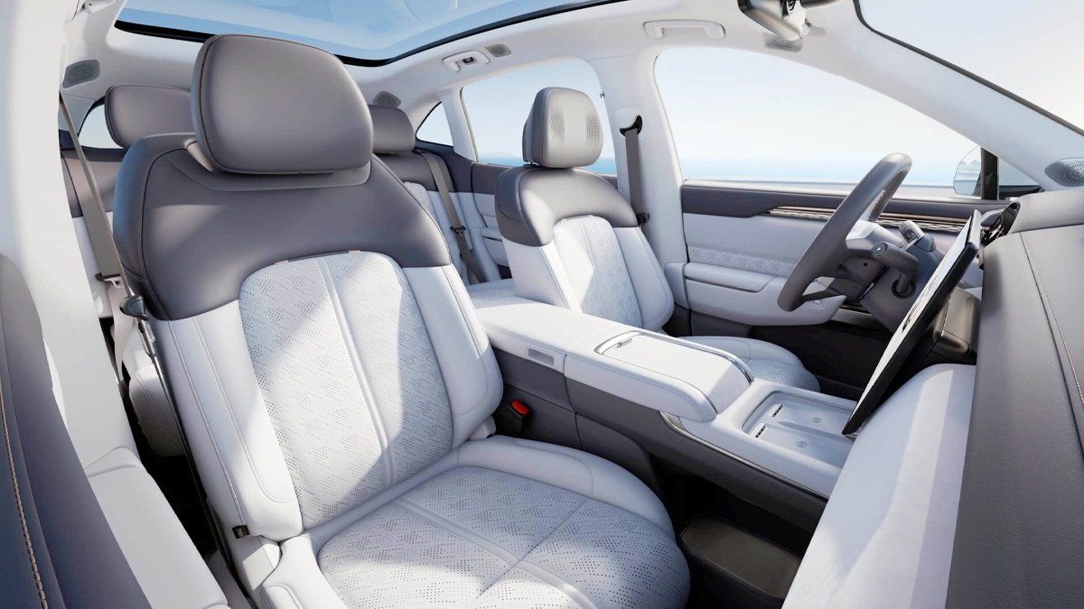 지커 7X는 싼타페, 쏘렌토급의 넉넉한 실내 공간을 강점으로 내세운다. 특히 2열에 레그레스트가 포함된 릴렉션 시트를 제공해 패밀리카로서의 가치를 극대화했다. 여기에 에어 서스펜션까지 적용해 고급스러운 승차감을 구현, 국산 경쟁 모델들과의 차별화를 꾀했다. 디자인 총괄 역시 벤틀리와 아우디 출신의 디자이너가 맡아 제네시스와 비교해도 어색하지 않은 세련된 유러피언 감성을 완성했다.