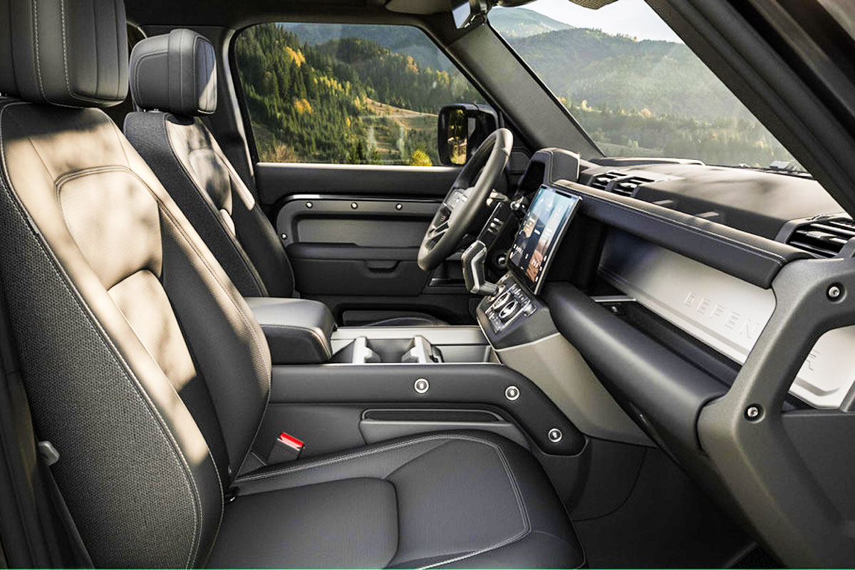 또한 전후면 범퍼 표면 처리와 보닛 및 사이드 벤트의 사각 패턴 디자인을 통해 디펜더 고유의 터프한 이미지를 한층 부각시켰다. 외장 컬러 역시 자연에서 영감을 받은 보라스코 그레이, 울스톤 그린 등 신규 색상이 추가되어 소비자 선택의 폭을 넓혔다.