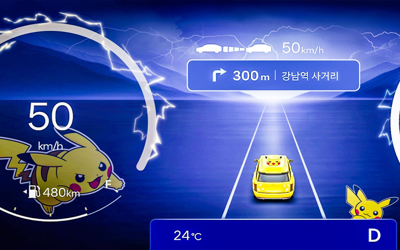 테마를 적용하면 차량의 사용자 경험(UX) 전체가 해당 캐릭터의 세계관으로 바뀐다. 시동을 걸 때 나타나는 애니메이션부터 계기판의 속도계, 내비게이션 화면과 지도 아이콘까지 모든 요소에 캐릭터 디자인이 녹아든다.