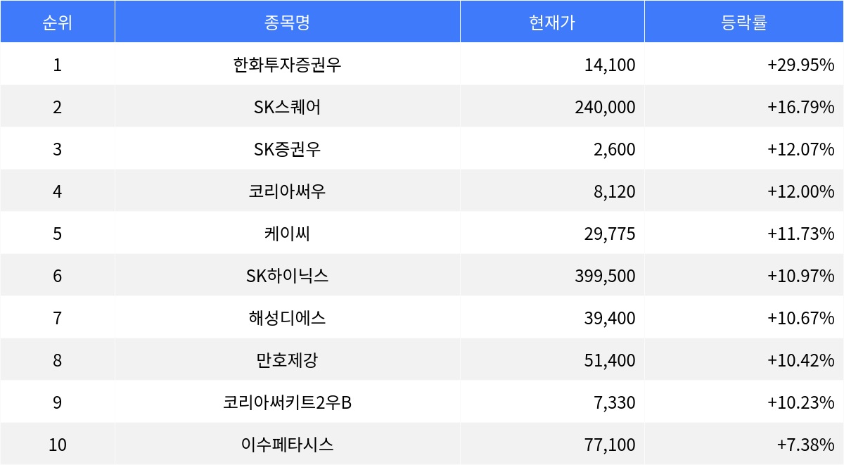 SK스퀘어, SK증권우 등 주요 종목 상승세 지속