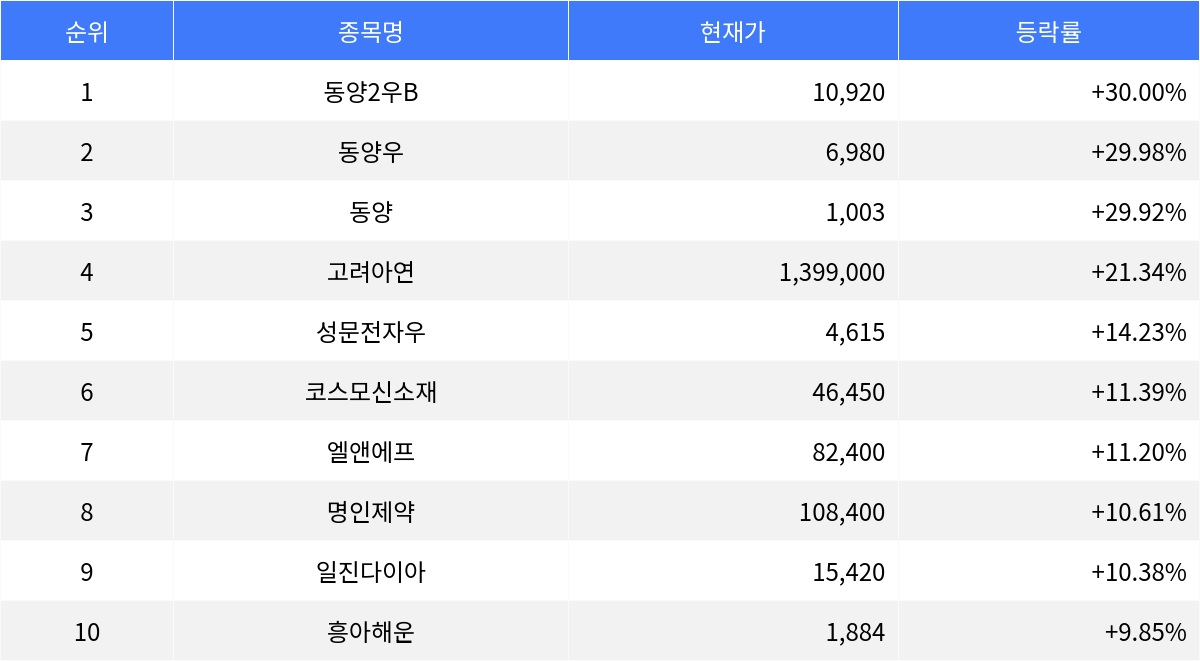 동양우와 동양도 각각 29.98%, 29.92% 상승