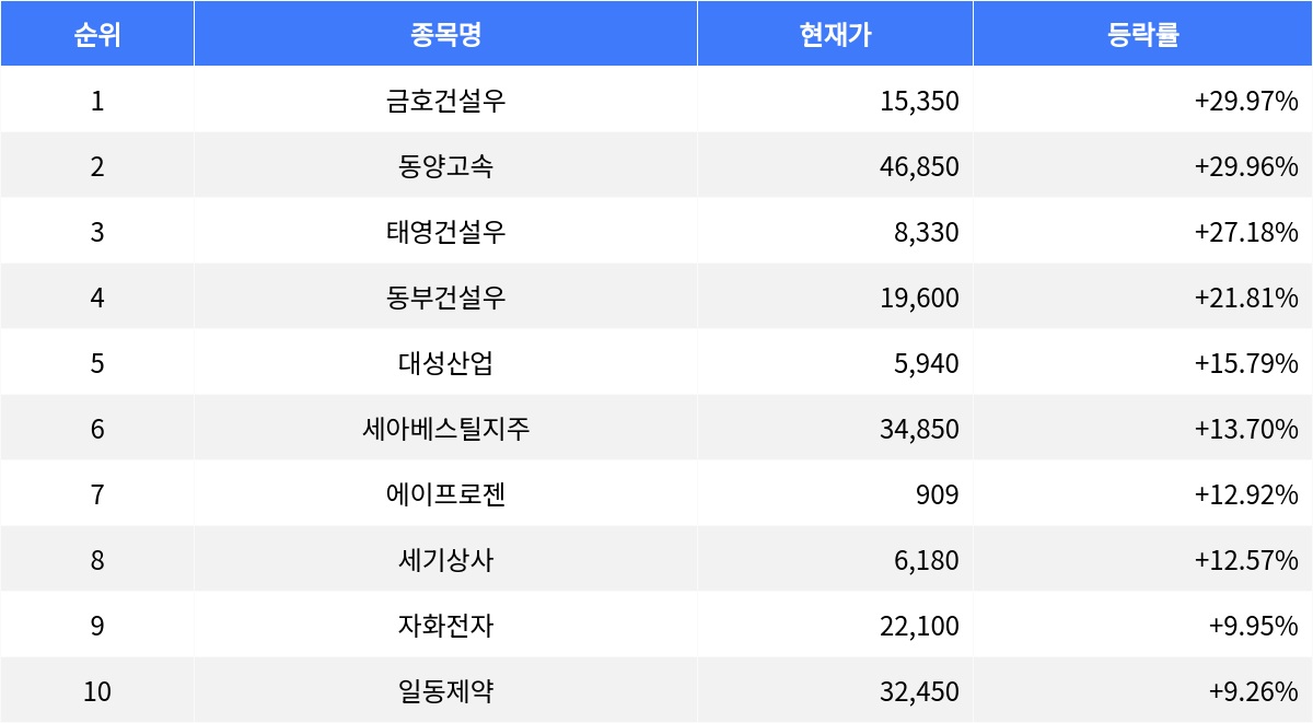 동양고속, 태영건설우 등 상승세 이어져, 매수세 강한 종목도 주목받아