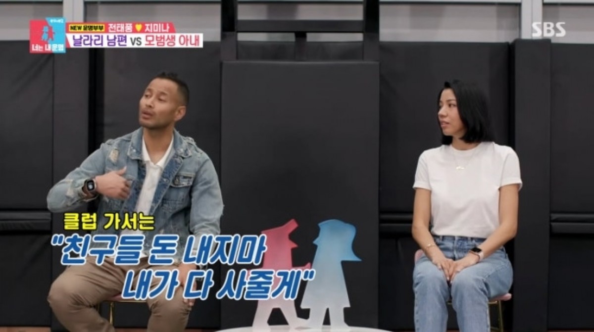 전태풍은 “미국에서 캐딜락 고급 스포츠유틸리티차량(SUV)을 대출 없이 현금 일시불로 질렀다”며 “솔직히 여자를 꼬시고 싶어서 샀다”고 털어놨다. 이는 가정적인 이미지를 기대했던 시청자들에게는 다소 당혹스러운 고백이었다. 반면 그의 아내 지미나 씨는 미국 명문대를 졸업하고 한국에서 유명 어학원의 영어 일타강사로 활동했던 엘리트 재원으로 알려져, 두 사람의 극명하게 다른 성향이 더욱 부각됐다.