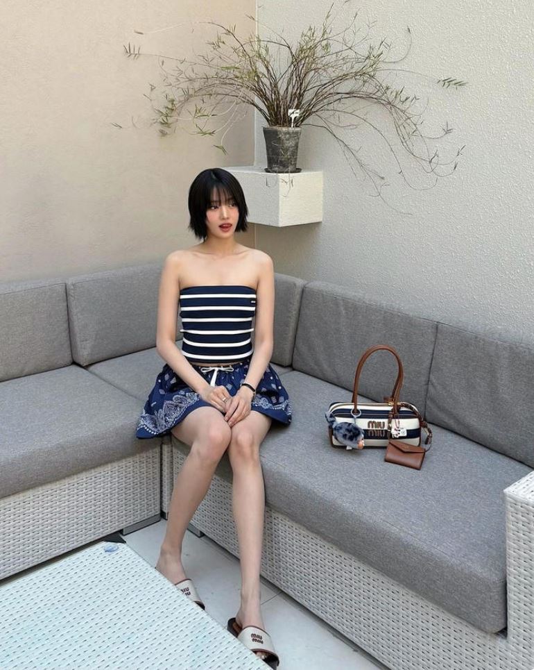 촬영 배경은 심플한 인테리어가 돋보이는 실내 카페로, 회색톤 소파와 작은 소품들이 차분하고 아늑한 분위기를 연출했다. 특히 민니 옆에 놓인 미우미우 핸드백이 룩의 포인트로 자리잡으며 그녀의 감각적인 패션 감각을 더욱 돋보이게 했다.꾸밈 없이 담백한 매력으로 시선 집중