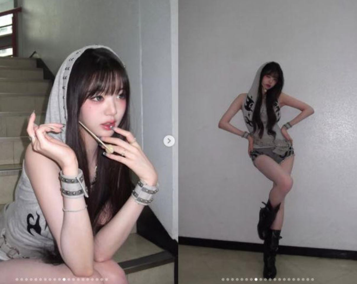 그룹 아이브(IVE)의 장원영이 또 한 번 인형 같은 미모를 과시했다. 10일 장원영은 자신의 개인 SNS 계정을 통해 여러 장의 사진을 공개하며 근황을 전했다. 공개된 사진 속 장원영은 숏팬츠와 후드 모자가 달린 민소매 상의를 착용한 채 계단에 앉아 카메라를 응시하고 있다.