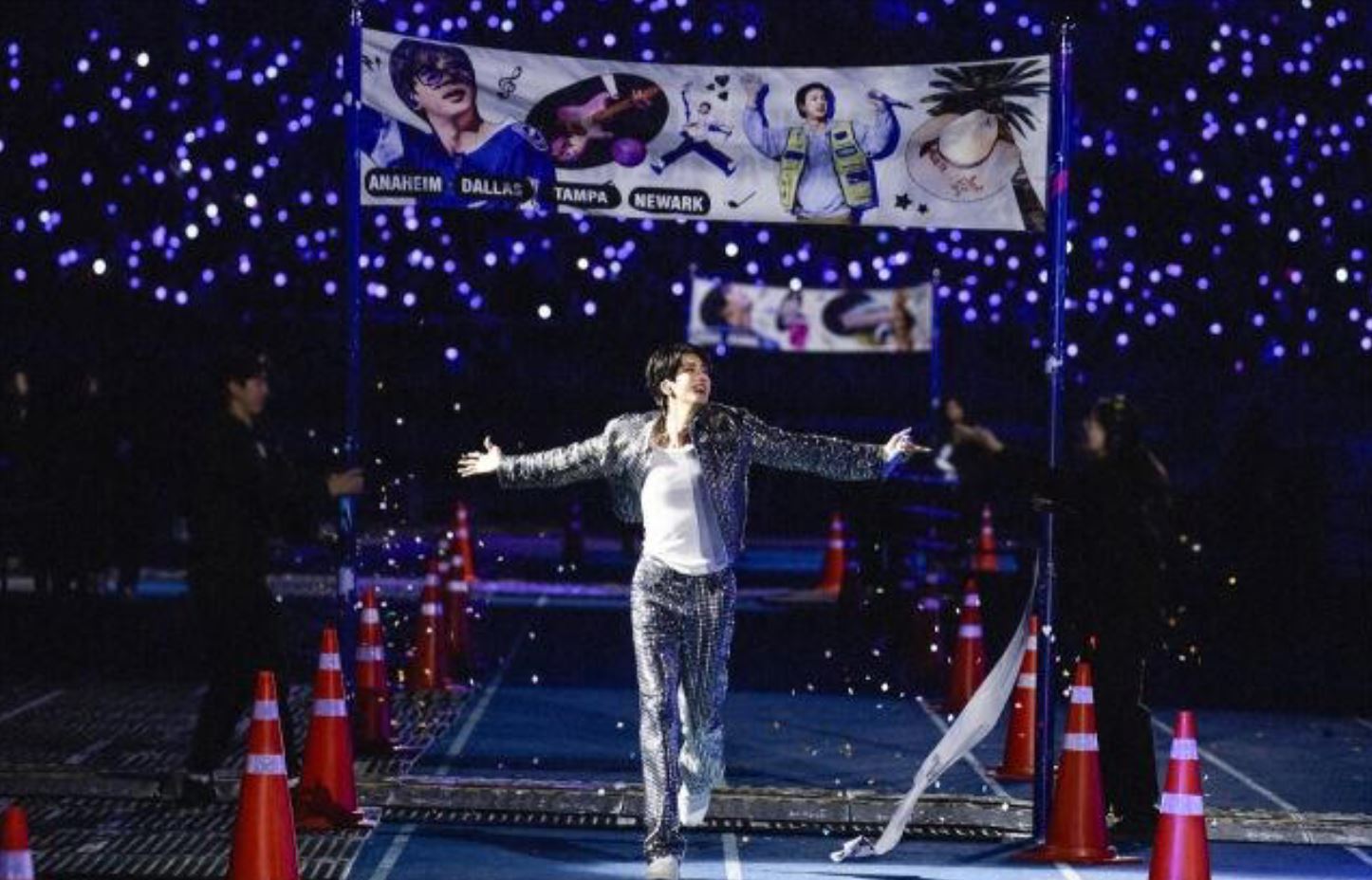 공연 말미에는 8년 만에 선보인 솔로곡 ‘Awake’가 울려 퍼졌다. 화려한 불꽃놀이와 함께 무대를 마무리한 진은 “2주 남짓한 준비였지만, 아미가 만족했다면 그걸로 충분하다”라며 짧은 준비 기간에도 전력을 다한 소회를 전했다. 이어 대형 벌룬을 타고 관객석을 한 바퀴 돌며 ‘MOON’, 마지막 곡 ‘오늘의 나에게’로 팬들과 눈을 맞추며 여정을 마무리했다.
