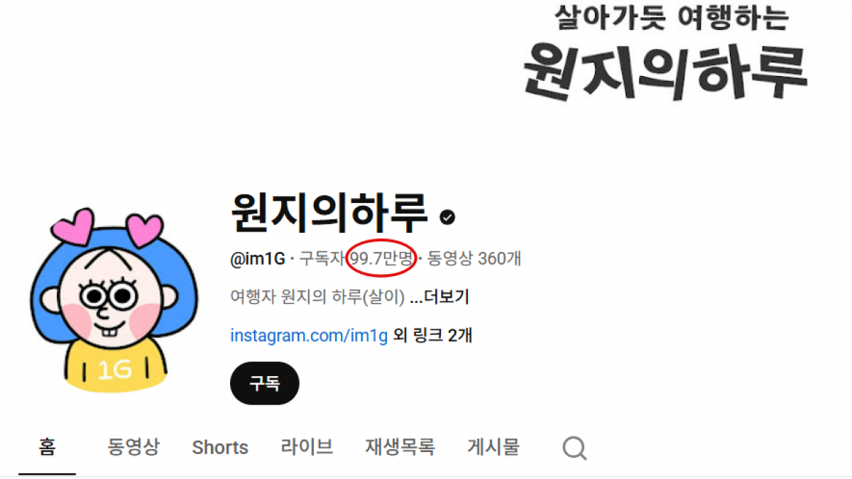 3일 오후 기준, 원지의 유튜브 채널 ‘원지의 하루’ 구독자 수는 99만 7000여 명으로 집계됐다. 한때 102만 명을 돌파하며 인기를 증명했던 채널이 불과 2주도 안 되는 기간에 약 3만 명의 구독자를 잃은 것이다.
