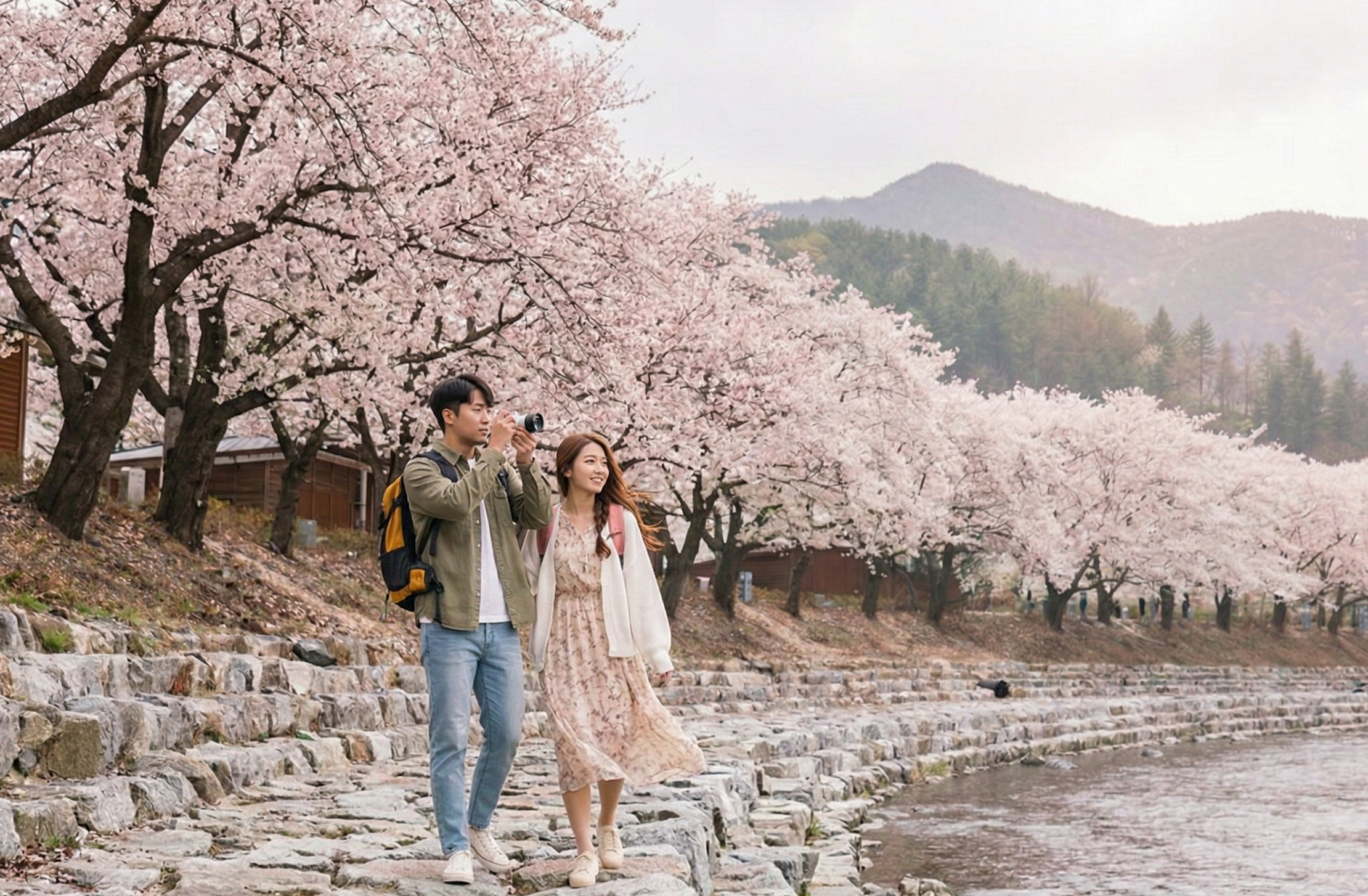 여행의 마지막은 온천에서 마무리하는 코스가 일반적이다. 충주 수안보 온천은 한국에서 가장 오래된 온천 관광지 가운데 하나로, 온천욕과 숙박을 결합한 힐링 여행지로 꾸준히 사랑받고 있다. 특히 벚꽃 시즌에는 온천 주변 벚꽃길이 유명해 봄 여행지로도 인기가 높다.