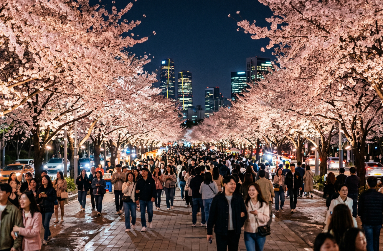 또한 인기 명소는 주말보다 평일 저녁이 훨씬 여유롭다. 사진 촬영 시에는 조명 방향을 활용하면 벚꽃이 더욱 선명하게 표현된다.