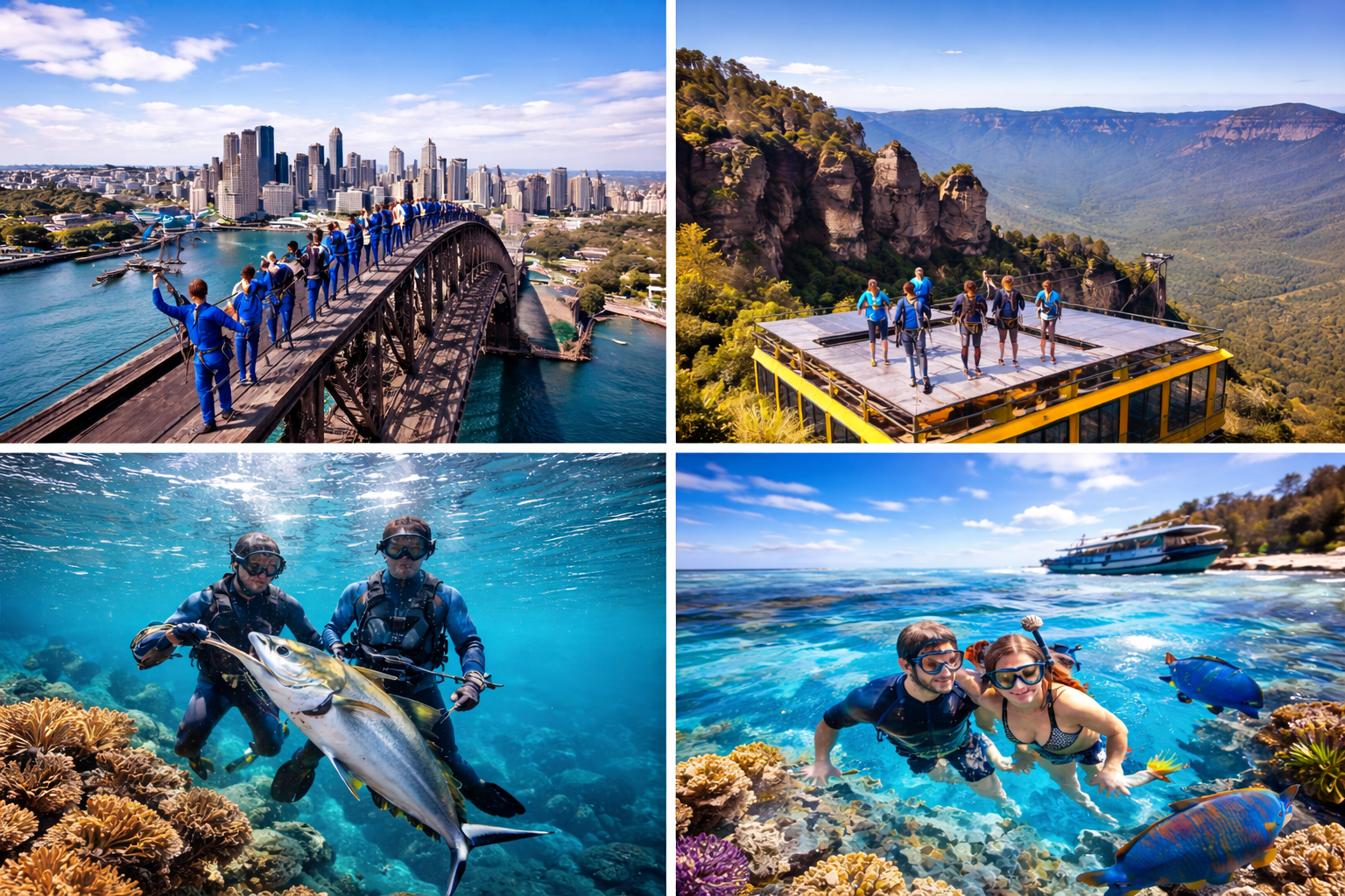 이 세 가지 체험을 연결하면 호주 자연 여행의 핵심을 압축한 일정이 완성된다. 첫날에는 시드니 도심을 둘러본 뒤 하버 브리지 클라이밍으로 도시 전경을 감상하고, 다음 날에는 블루마운틴으로 이동해 협곡 위 케이블카 체험과 트레킹을 즐기는 방식이다. 이후 해안 지역으로 이동해 스피어 피싱 같은 해양 스포츠를 체험하면 도시, 산악, 바다 풍경을 모두 경험할 수 있다.