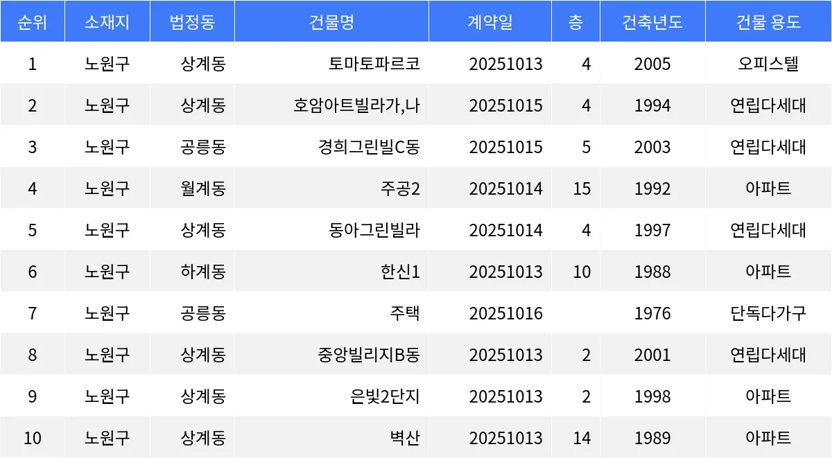 43주차 노원구 매매가 하위 매물 분석
