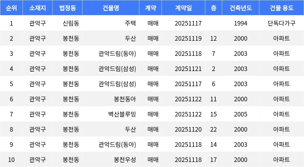 48주차 관악구 매매가 상위 매물 분석