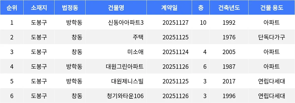 49주차 도봉구 매매가 상위 매물 분석
