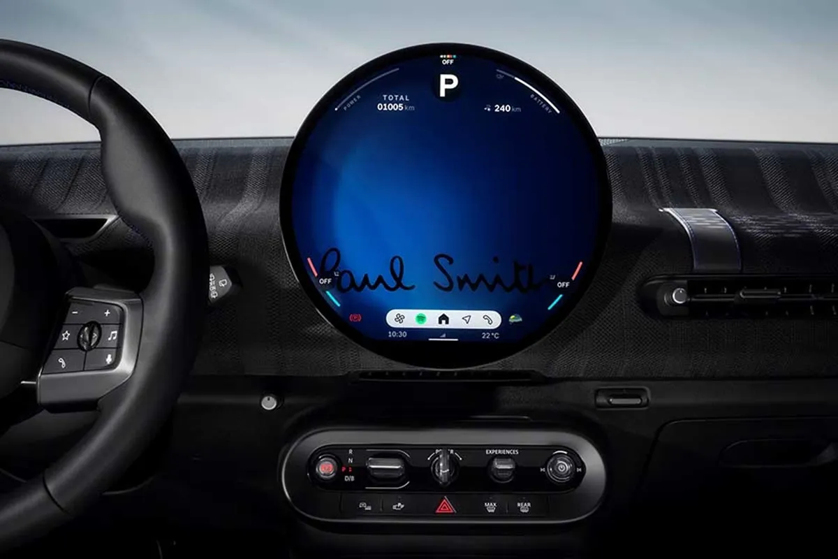 폴 스미스 에디션의 핵심은 ‘미니멀리즘’이다. 외관은 폴 스미스가 직접 디자인한 랜드로버 디펜더에서 영감을 받은 ‘브라이트 블루’ 컬러로 마감됐다. 기존 미니 모델에 적용되던 크롬 파츠는 모두 블랙 색상으로 처리해 한층 현대적이고 세련된 인상을 준다. 라임 그린 색상의 배터리 박스는 전기차로서의 정체성을 명확히 보여주는 디자인 포인트다.실내는 더욱 파격적이다. 미니의 상징과도 같았던 중앙 원형 디스플레이는 과감히 제거했다. 대신 스마트폰 거치대를 마련해 운전자가 자신의 스마트폰을 인포테인먼트 시스템으로 활용하도록 했다. 대시보드와 도어 숄더 등에는 재활용 니트 직물을, 바닥 매트에는 재활용 고무를 사용하는 등 실내 곳곳에 지속가능한 소재를 적극적으로 활용했다.
