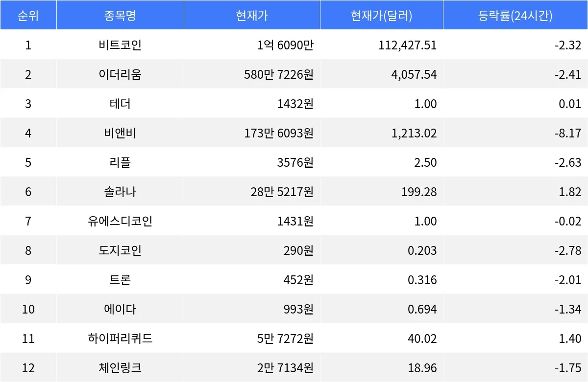 14일 글로벌 가상자산 시황 중계 사이트 코인마켓캡(CoinMarketCap)에 따르면, 비트코인의 현재가는 1억 6090만원이며, 24시간 동안 2.32% 하락했다. 비트코인은 가장 널리 알려진 탈중앙화 디지털 화폐로, 블록체인 기술을 기반으로 하여 안전하고 투명한 거래를 지원한다. 24시간 거래량은 102조 5961억원이다.