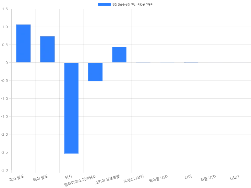 페이팔 USD는 0.01% 하락하며 1419원에 거래되고 있으며, 다이와 리플 USD는 각각 0.01%와 0.02% 하락하여 1420원에 거래되고 있다. USD1 역시 0.02% 하락하며 1420원에 거래 중이다.