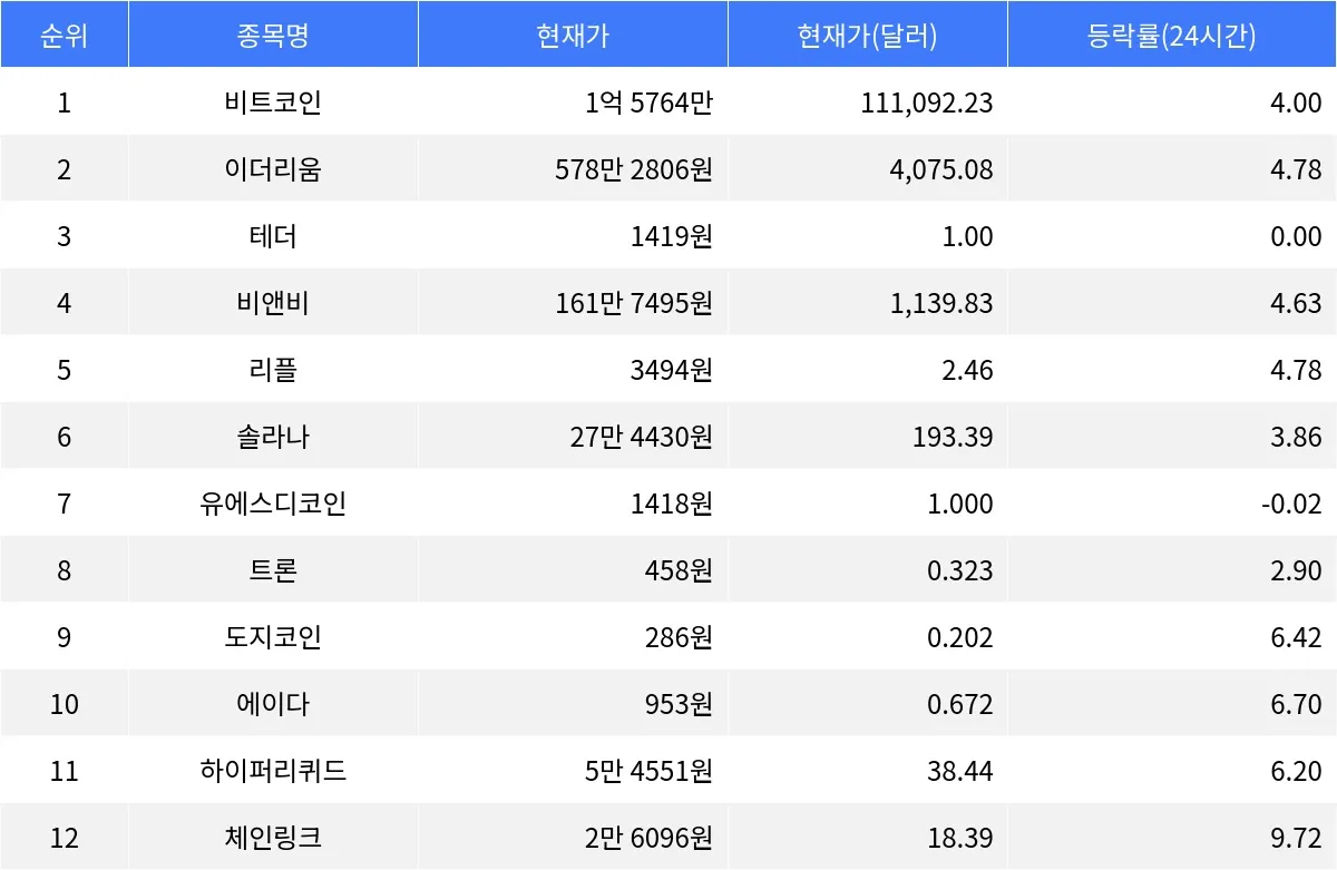 도지코인은 286원으로 24시간 동안 6.42% 상승했다. 도지코인은 밈코인으로, 커뮤니티 중심의 친근한 이미지로 인기를 끌고 있다. 24시간 거래량은 3조 4569억 원이다.