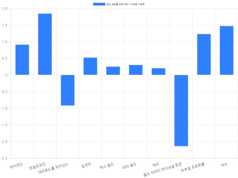 한편, 테더 골드는 24시간 동안 3.05% 상승했으며, 1시간 동안 0.30% 상승세를 유지하고 있다. 레오는 2.02% 상승했으며, 월드 리버티 파이낸셜 토큰은 1.34% 상승했다. 버추얼 프로토콜은 0.94% 상승했고, 넥소는 0.76%의 상승률을 보였다.