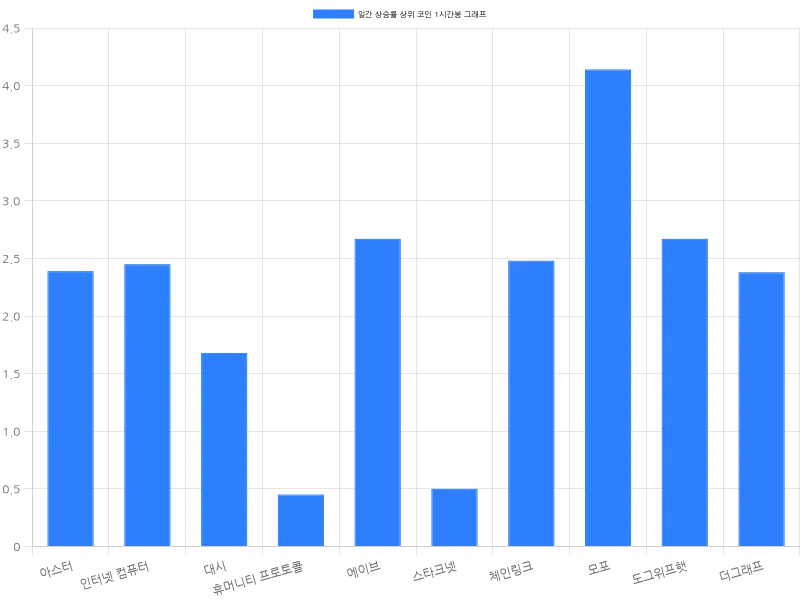 스타크넷은 24시간 동안 3.46% 상승하며 170원에 거래되고 있으며, 1시간 동안 0.50% 상승했다. 체인링크는 24시간 동안 2.80% 상승하며 2만 5169원에 거래되고 있으며, 1시간 동안 2.48% 상승했다. 모포는 24시간 동안 2.32% 상승하며 2972원에 거래되고 있으며, 1시간 동안 4.14% 상승했다. 도그위프햇은 24시간 동안 1.97% 상승하며 780원에 거래되고 있으며, 1시간 동안 2.67% 상승했다. 더그래프는 24시간 동안 1.60% 상승하며 93원에 거래되고 있으며, 1시간 동안 2.38% 상승했다.