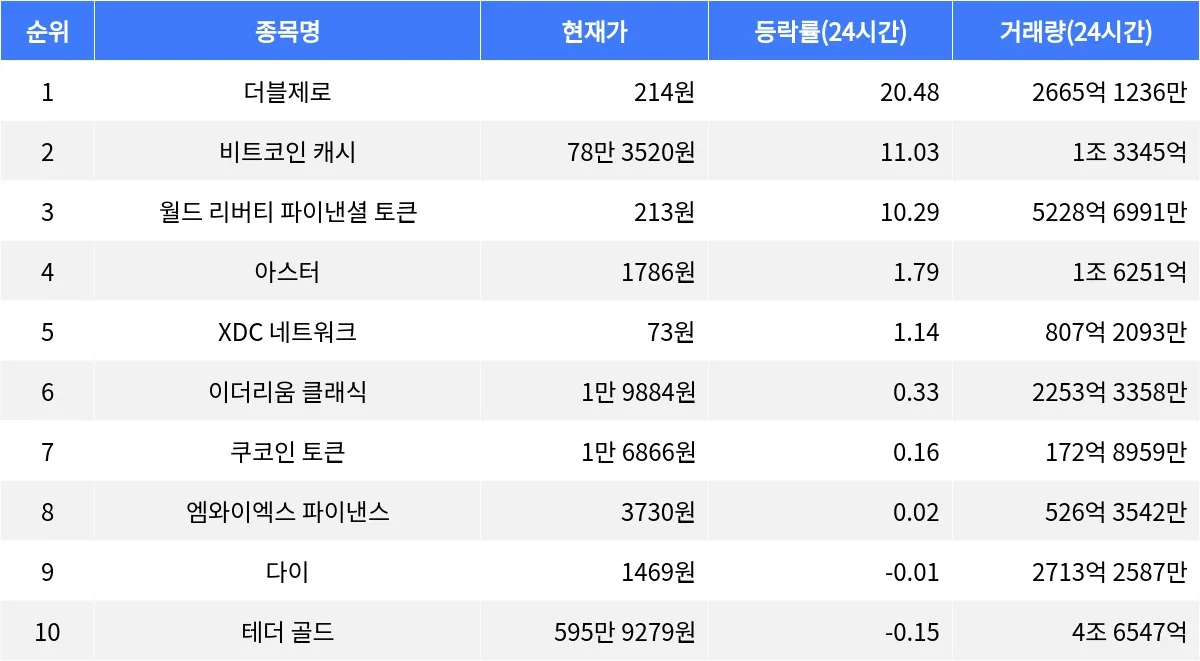 한편, 더블제로는 최근 높은 거래량과 상승세를 기록하며 투자자들의 관심을 끌고 있다. 비트코인 캐시는 시장 내에서 안정적인 인기를 유지하고 있으며, 월드 리버티 파이낸셜 토큰은 금융 관련 플랫폼에서의 활용도가 높은 것으로 알려져 있다.