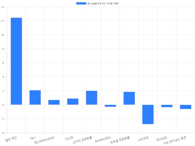 같은 시각 하이퍼리퀴드는 7.50% 상승하며 5만 3291원에 거래되고 있으며, 1시간 동안 0.29% 하락했으나 전체적인 상승 추세는 지속되고 있다. 버추얼 프로토콜은 6.54% 상승, 스타크넷은 6.17% 상승, 파이코인은 5.92% 상승, 커브 파이낸스 토큰은 5.78% 상승을 기록하며 각각의 가격 상승세를 이어가고 있다.