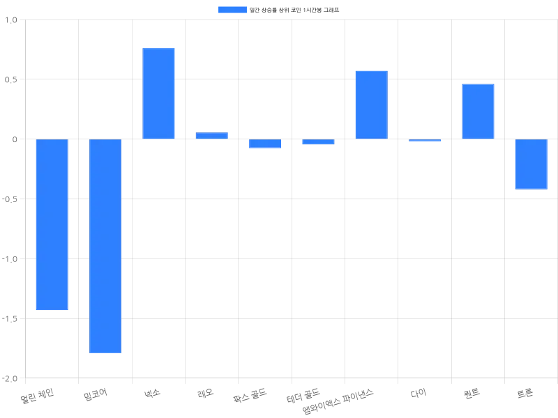 한편, 밈코어는 0.66% 상승하며 2095원에 거래되고 있다. 24시간 거래량은 577억 2382만 원으로, 시가총액 순위는 46위에 해당한다. 1시간 등락률은 1.79% 하락을 보였지만, 24시간 상승세가 유지되고 있는 상황이다.
