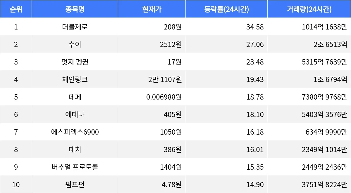 더블제로는 최근 강력한 상승세를 보이며, 거래량의 증가와 더불어 가격 상승을 동반하고 있다. 이처럼 거래량이 증가하는 경우, 시장 참여자들이 활발하게 거래하고 있음을 나타낼 수 있으며, 이는 가격의 추가 상승 가능성을 시사할 수 있다. 반면, 수이와 같은 종목은 단기적인 조정 국면에 접어들 수 있으며, 이는 전체적인 시장 분위기에 영향을 받을 수 있다.