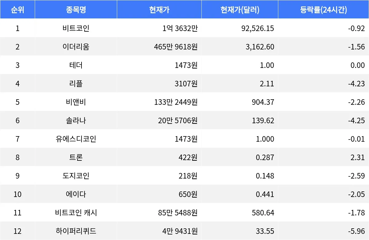 리플은 현재 3107원으로, 24시간 동안 -4.23% 하락했다. 리플은 주로 은행 간의 국제 송금을 효율적으로 처리하기 위해 설계된 디지털 자산이다. 24시간 거래량은 4조 8175억원에 달한다.